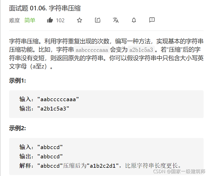 字符串“aabcccccaaa”压缩成“a2b1c5a3“还要返回更
