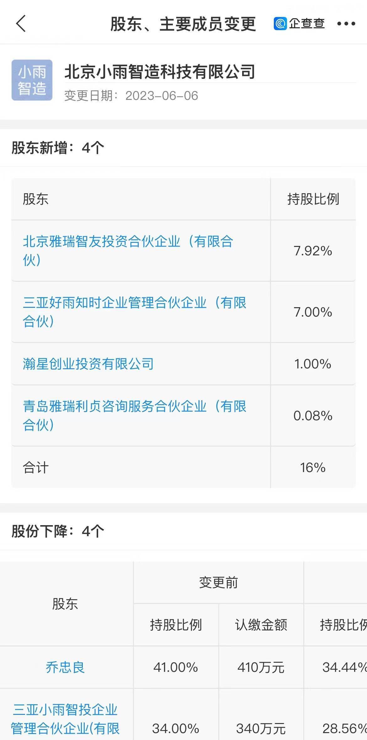 原标题:小米投资小雨智造,后者业务含智能呆板人的研发等 乐居财经 吴文婷6月7日,据企查查,北京小雨智造科技有限公司(以 ...