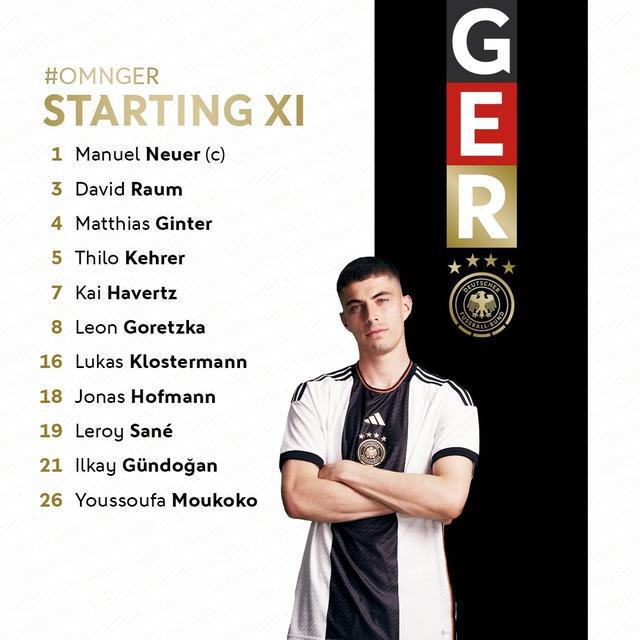 德国vs阿曼首发:穆科科先发,萨内、哈弗茨首发
