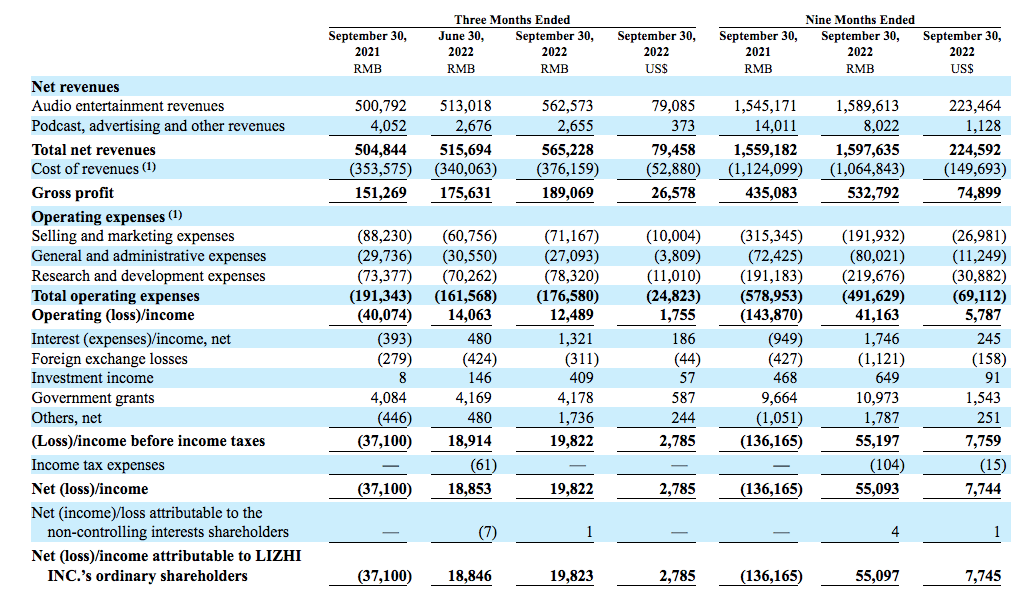 原标题:荔枝Q3营收净利创新高,尚有两大数据下滑,赖奕龙曾收不合规关照 出品:子弹财观 11月16日消息,中国在线音频上市公司荔枝 ...