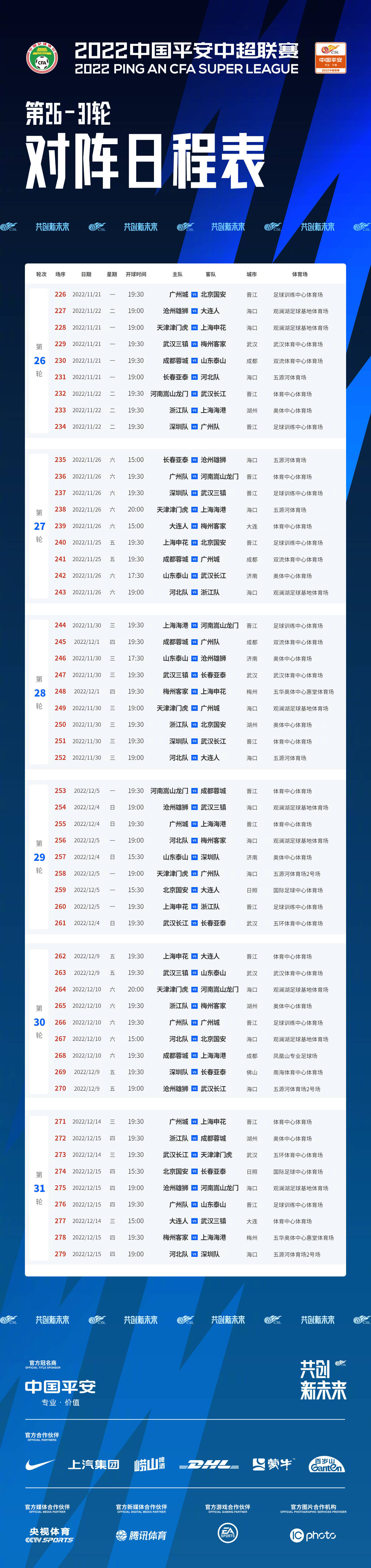 硬刚天下杯!中超官方公布26-31轮赛程 6轮角逐与天下杯重合 ...