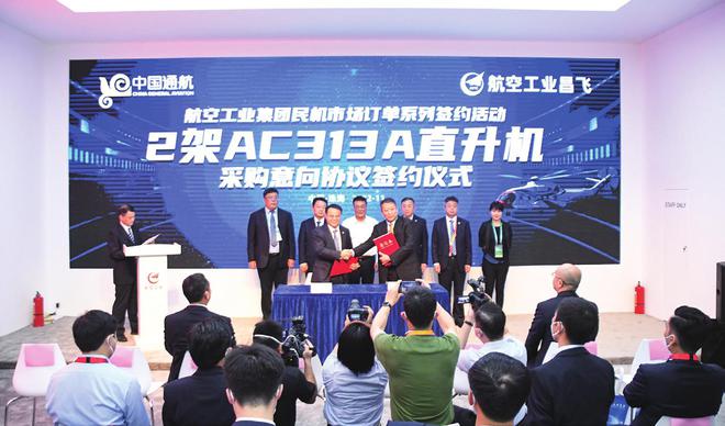 钟旖摄中国航空报讯:11月8日,在第十四届中国航展上,航空工业哈飞与保利科技有限公司签署2架“祥瑞鸟”AC312E直升机采购条约。这是AC312E直升机的首笔国际订单 ...