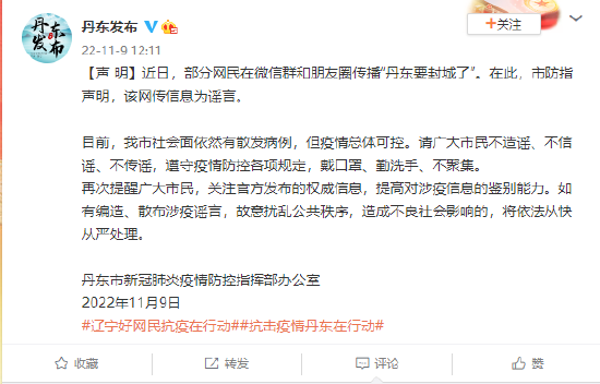泉源:丹东发布 [声 明]克日,部门网民在微信群和朋侪圈流传“丹东要封城了”。在此,市防指声明,该网传信息为谎言。 现在,我市社碰面依然有 ...