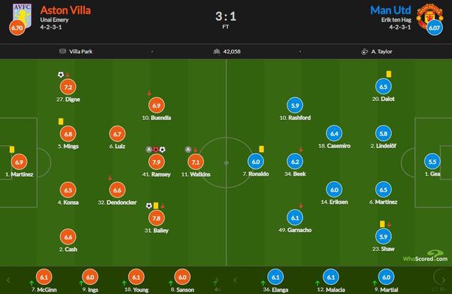 曼联vs维拉评分:拉姆塞传射+乌龙7.9最高 C罗6.0