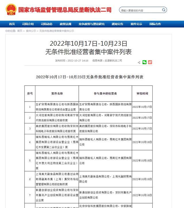 11 月 2 日,中国联通与腾讯设立混改新公司话题引发关注。据国家市场羁系总局反把持执法二司 10 月 27 日发布的 2022 年 10 月 17 日 -10 月 23 日无条件答应谋 ...