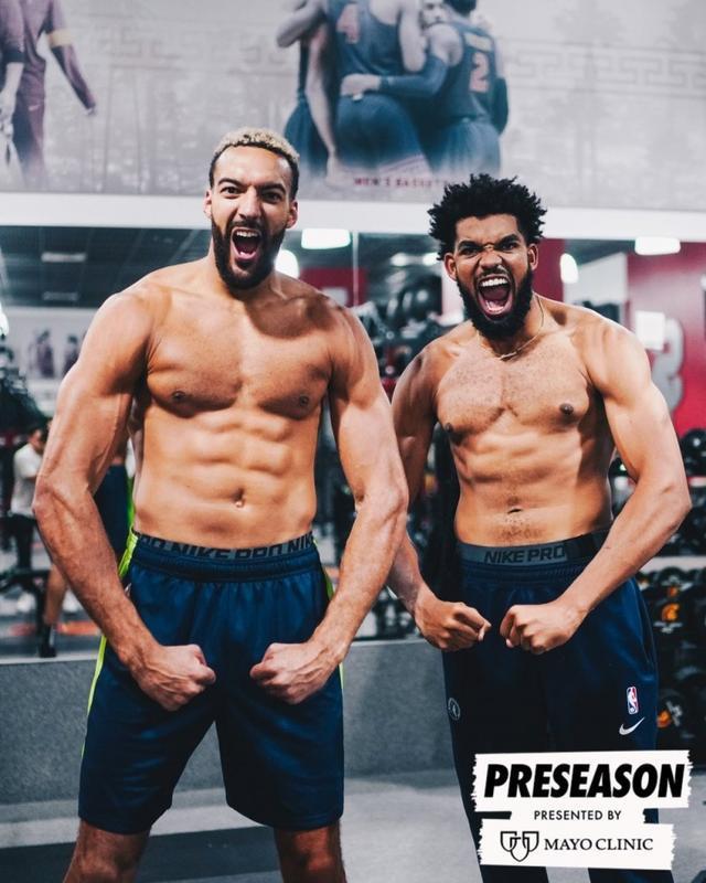 丛林狼官方晒出双塔戈贝尔与唐斯肌肉照:可怕时候