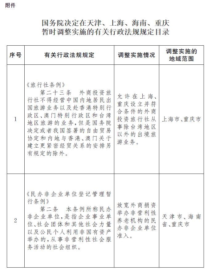 国务院:答应在上海、重庆设立并符合条件的外商投资观光社从事除台湾地域以 ...