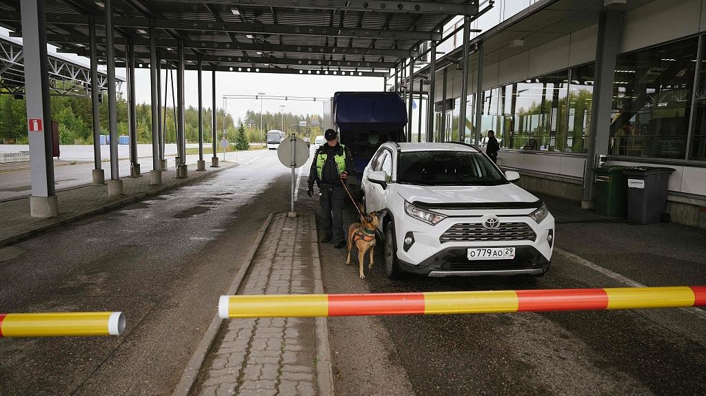 本地时间2022年9月29日,在芬兰与俄罗斯疆域的瓦利马疆域查抄站,一名边防军官带着狗查抄一辆进入芬兰的车辆。人民视觉 图本地时间9月30日起,芬兰向俄罗 ...