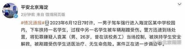 北京海淀警方:一夫君驾车强行进入中学校园挟持门生,已被控制 ...