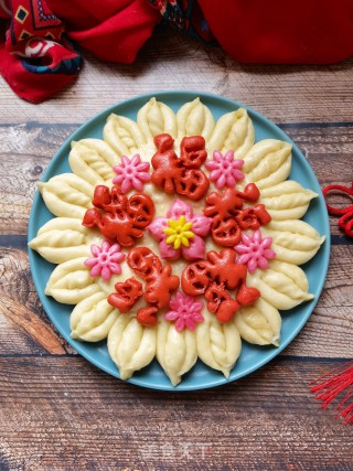 正在花瓣上压出纹理。与北瓜里团,压出黄色小花。